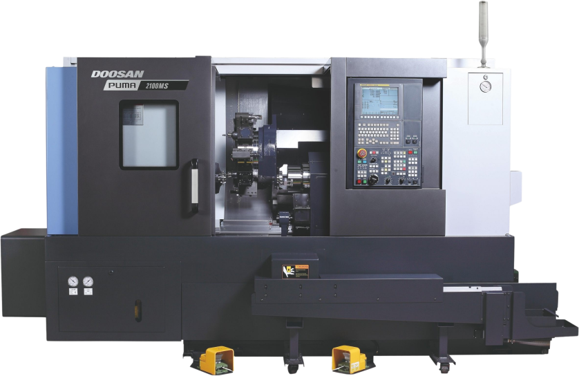 The Puma 2100MS is compatible with Fanuc and Siemens.