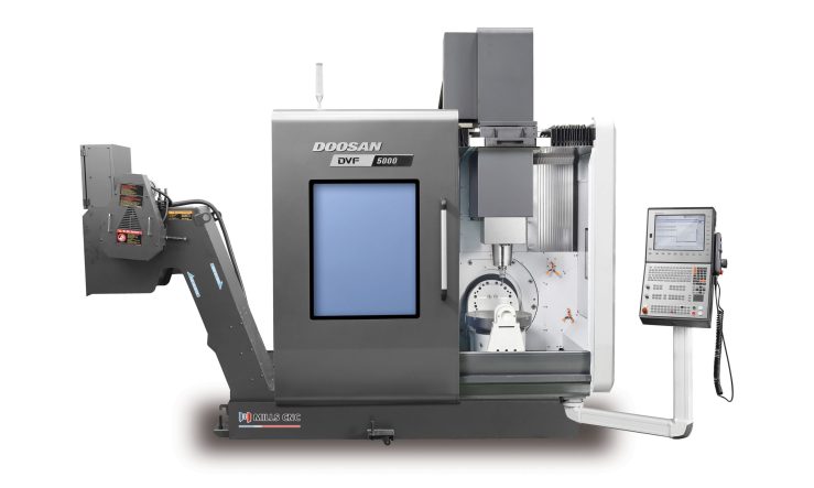 Latest Doosan DVF 5000 simultaneous 5-axis machine makes its MACH Show debut and pulls in the crowds.